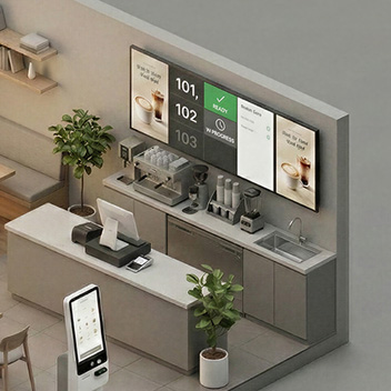 고객은 번호를 놓치지 않고, 직원은 반복 안내에 덜 묶입니다. 대기 시간에는 신메뉴·세트·이벤트 같은 핵심 정보가 자연스럽게 전달되어, 운영은 더 정돈되고 매장은 안정적으로 돌아갑니다.